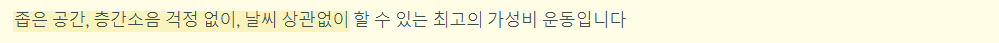 | 걷기 | 시속 4km | 약 120 kcal | 하체 위주 |
