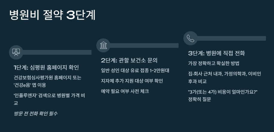 - "지금 독감 예방접종 가능한가요? 3가(또는 4가) 비용이 얼마인가요?"라고 정확하게 물어보세요.