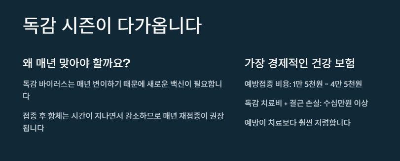 독감 예방접종은 겨울철 건강을 지키기 위한 가장 경제적이고 확실한 '셀프 건강 보험'입니다.