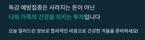 독감 예방접종 비용은 사라지는 돈이 아니라, 나와 내 가족의 건강한 겨울을 위한 '투자'입니다. 몇만 원의 접종비가 아까워 망설이다가, 독감에 걸려 며칠을 앓아눕고 치료비를 쓰는 것이 훨씬 큰 손해입니다.