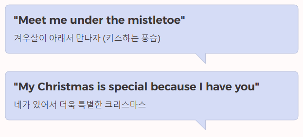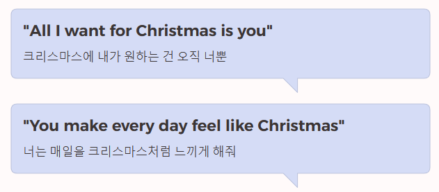 - "All I want for Christmas is you." (크리스마스에 내가 원하는 건 오직 너뿐이야.)