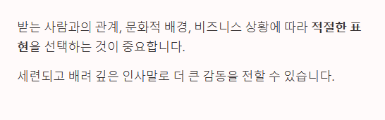 - "Thank you for your partnership this year. Wishing you a prosperous New Year." (올해 귀하의 협력에 감사드립니다. 번창하는 새해 되시길 바랍니다.)