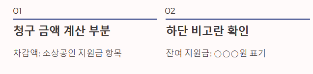 - 잔액: 고지서 하단 안내문(Remarks)이나 비고란에 잔여 지원금: OOO원이라고 작게 표기되어 있는 경우가 많습니다.