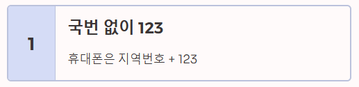 - 전화번호: 국번 없이 123 (휴대폰은 지역번호 + 123)