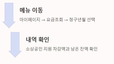 - 내역 확인: 상세 요금 내역에서 소상공인 전기요금 특별지원 차감 항목과 남은 잔액을 확인할 수 있습니다.