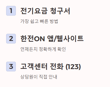 - 정확한 확인: 한전ON 앱 또는 123 전화