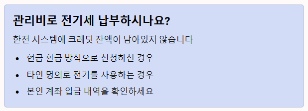 - 이분들은 한전 시스템에 크레딧(잔액)이 남아있지 않습니다.