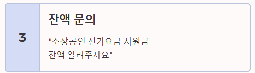 - **소상공인 전기요금 지원금 잔액이 얼마 남았나요?**라고 물어봅니다.