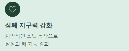 - 심폐 지구력 강화: 지속적인 스텝 동작은 심박수를 빠르게 올려 심장과 폐 기능을 튼튼하게 합니다.