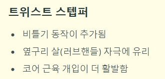 | 스텝퍼 | 중강도 | 약 200~250 kcal | 엉덩이, 허벅지 뒤쪽 |