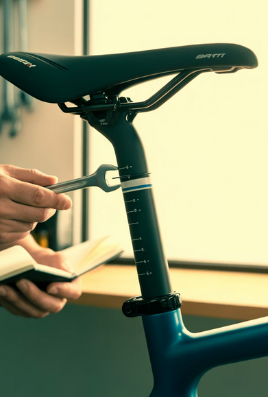- 안장 앞뒤 거리: 안장에 앉아 페달을 3시 방향(수평)으로 두었을 때, 무릎의 가장 튀어나온 부분이 페달 축과 수직이 되도록 조절합니다. 거리가 너무 멀면 허리를 숙이게 되어 요통을 유발합니다.