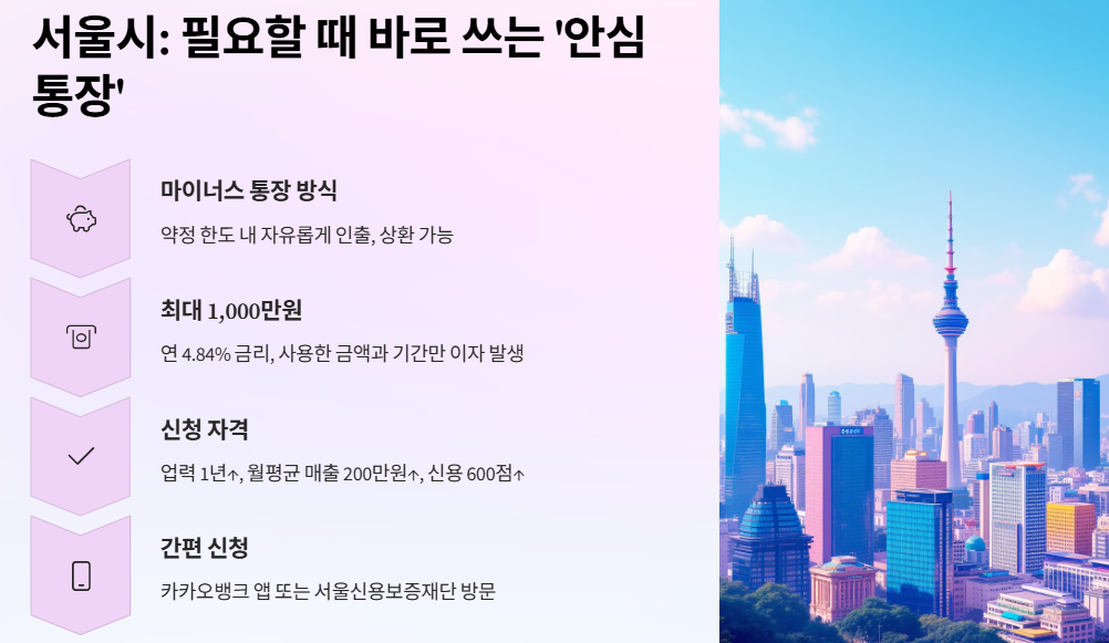 신청 방법: 카카오뱅크 앱을 통해 편리하게 비대면 신청이 가능하며, 서울신용보증재단 지점을 방문하여 신청할 수도 있습니다.