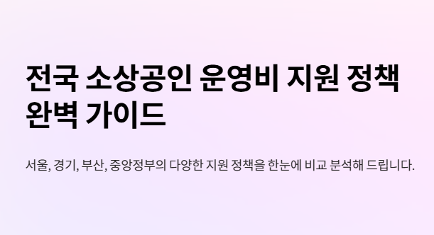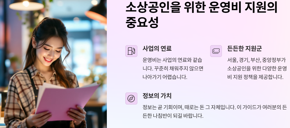 오늘은 각 지역별, 그리고 중앙정부의 운영비 지원 제도를 상세히 비교하고, 신청 방법과 조건까지 꼼꼼하게 정리하여, 바쁘신 사장님들께서도 필요한 정보를 쉽게 찾아 활용하실 수 있도록 돕고자 마련되었습니다.