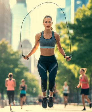 - 점프 요령: 높이 뛸 필요가 없습니다. 줄이 통과할 정도로만 가볍게(1~2cm) 점프합니다. 이때 착지는 반드시 발가락 앞부분(발볼)으로 사뿐히 해야 충격이 흡수됩니다. 뒤꿈치가 쿵쿵 닿으면 무릎이 망가집니다.