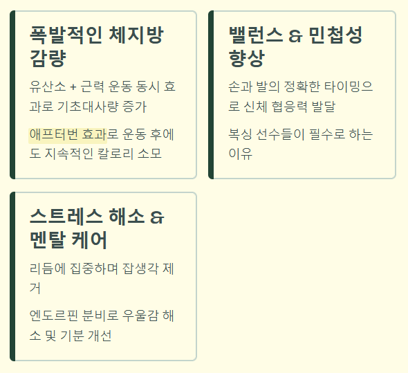 - 심폐 지구력 향상: 꾸준히 지속하면 심장과 폐 기능이 강화되어 지치지 않는 체력을 만들어줍니다.