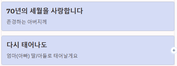 - 다시 태어나도 엄마(아빠) 딸/아들로 태어날게요.