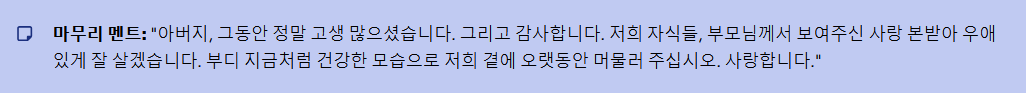 [자녀 대표] 장남/장녀의 점잖고 감동적인 버전