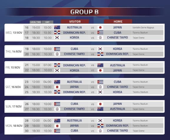 11월 14일 (목): 대한민국 vs 쿠바 (19:00)