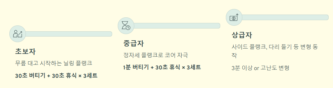 | 초보자 | 30초 | 약 2~3 kcal | 자세 적응 단계 |