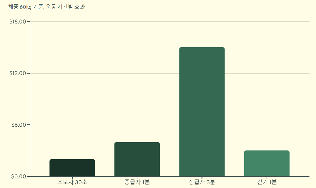 | 중급자 | 1분 | 약 4~6 kcal | 코어 자극 시작 |