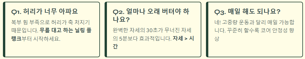 Q1. 플랭크를 하면 허리가 너무 아파요. 왜 그런가요?