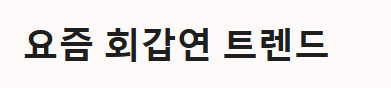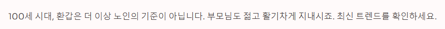 100세 시대가 되면서 환갑을 노인으로 취급하는 문화는 사라졌습니다. "환갑 잔치를 하면 오히려 쑥스러워하신다"는 말이 있을 정도입니다. 최근의 트렌드는 다음과 같습니다.