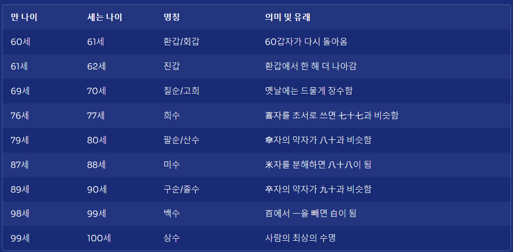 4. 연령별 장수 축하 용어 정리표