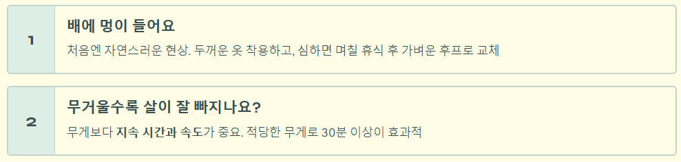 Q4. 밥 먹고 바로 해도 되나요? 식사 직후에는 위장이 음식물로 차 있어 복압이 높아진 상태입니다. 이때 배를 압박하면 소화 불량이나 역류성 식도염을 유발할 수 있습니다. 식후 1시간 이후에 하는 것을 권장합니다.