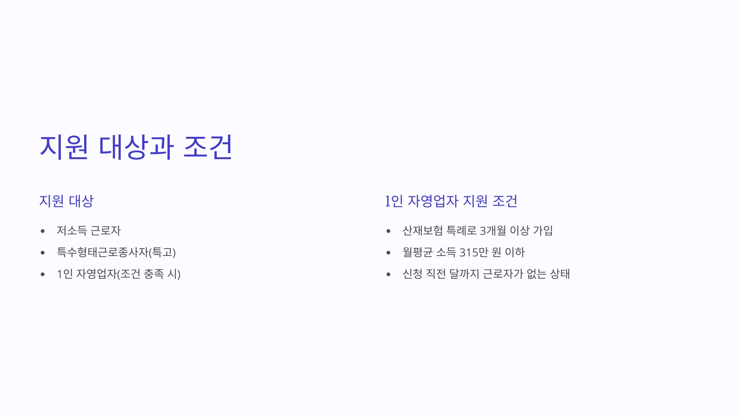 - 1인 자영업자(조건 충족 시)