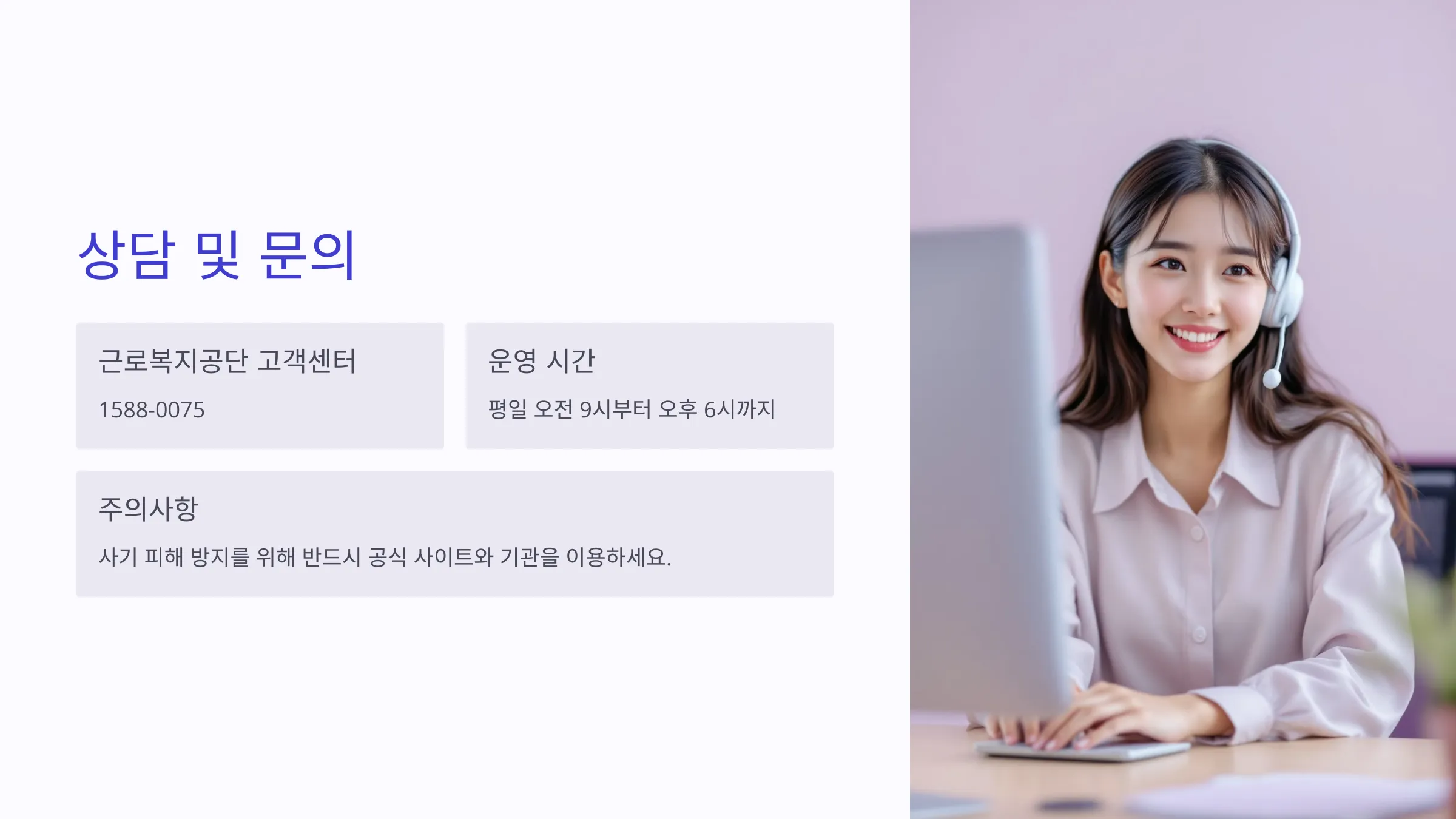궁금한점은 근로복지공단 고객센터(1588-0075)로 문의하면 전문적인 상담을 받을 수 있습니다. 운영 시간은 평일 오전 9시부터 오후 6시까지이며, 산재보험 가입 여부와 필요한 서류 목록에 대한 구체적인 정보를 확인할 수 있습니다. 사기 피해 방지를 위해 반드시 공식 사이트와 기관을 이용하시기 바랍니다.