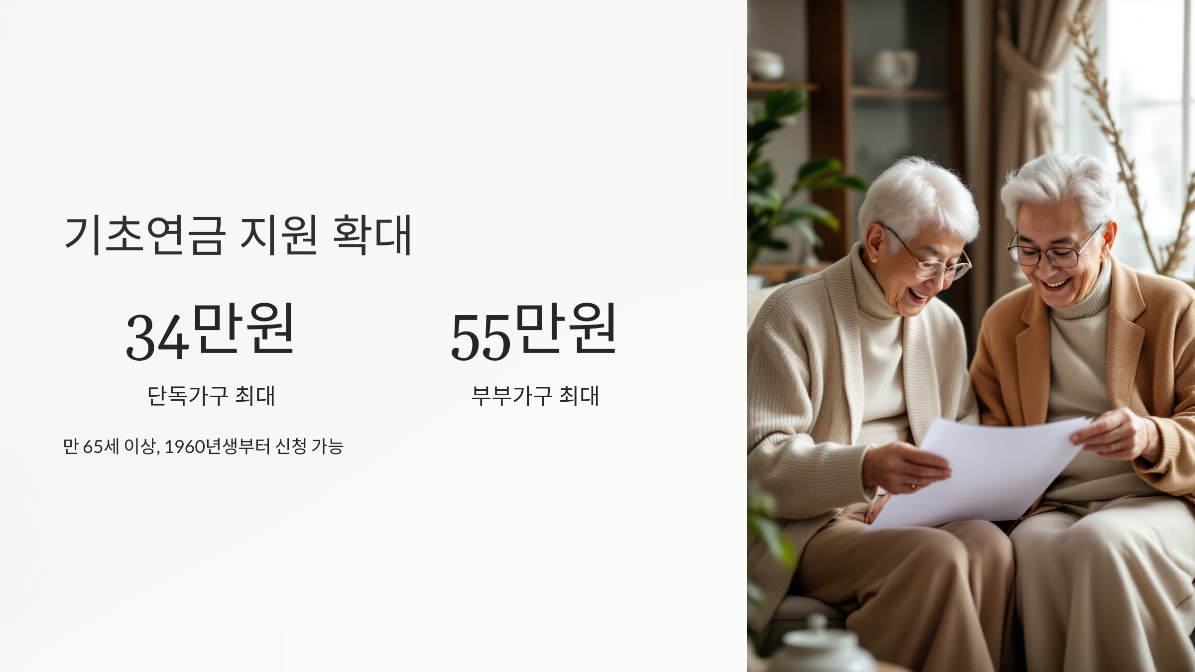 - 기대 효과: 고령층의 기본 생활 보장을 강화하고, 생활 안정성을 제공합니다.