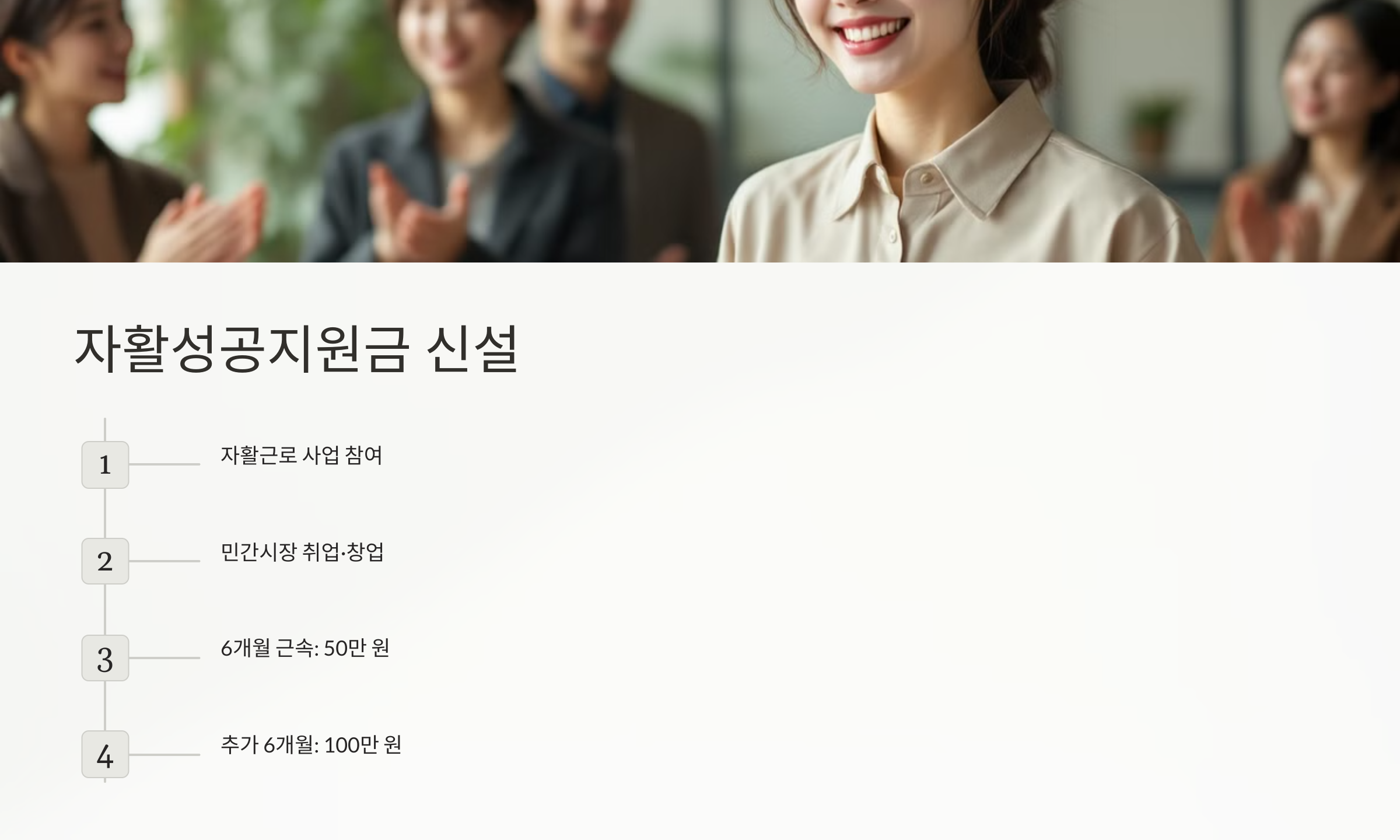 - 목표: 경제적 자립을 촉진하고, 탈수급 이후 안정적인 생활 기반을 마련하도록 돕습니다.
