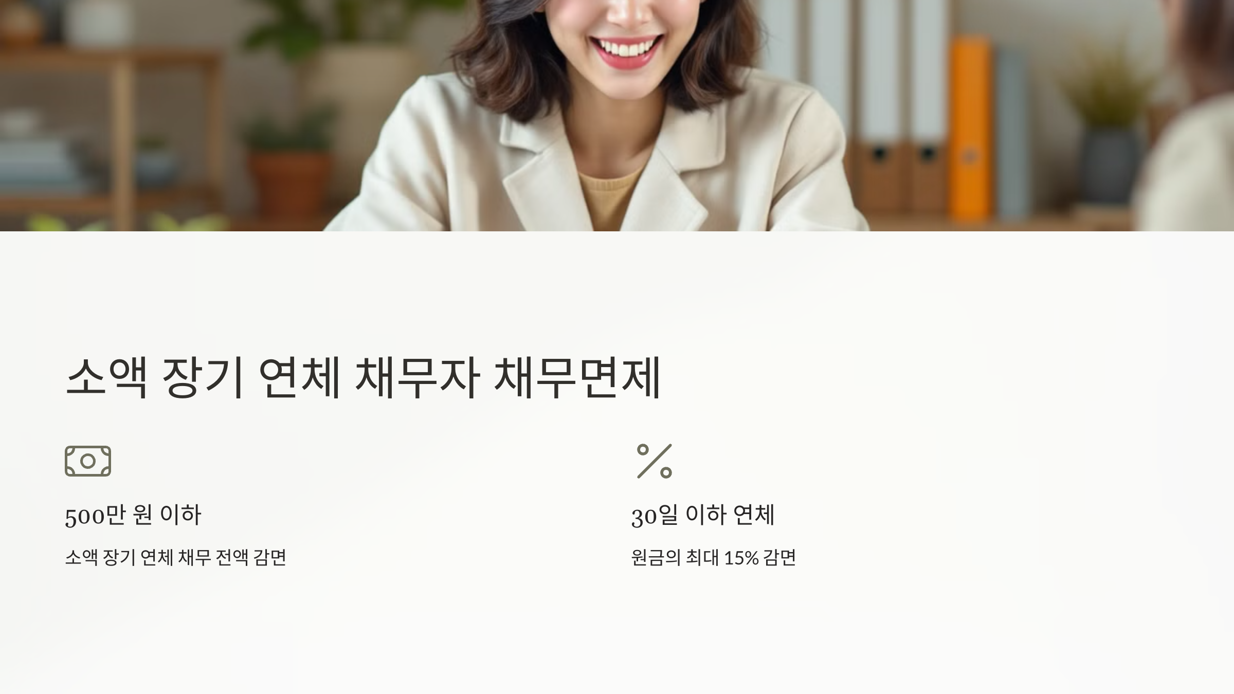 - 감면 내용: 원금 전액 면제 또는 연체 기간 30일 이하의 경우 원금의 최대 15% 감면
