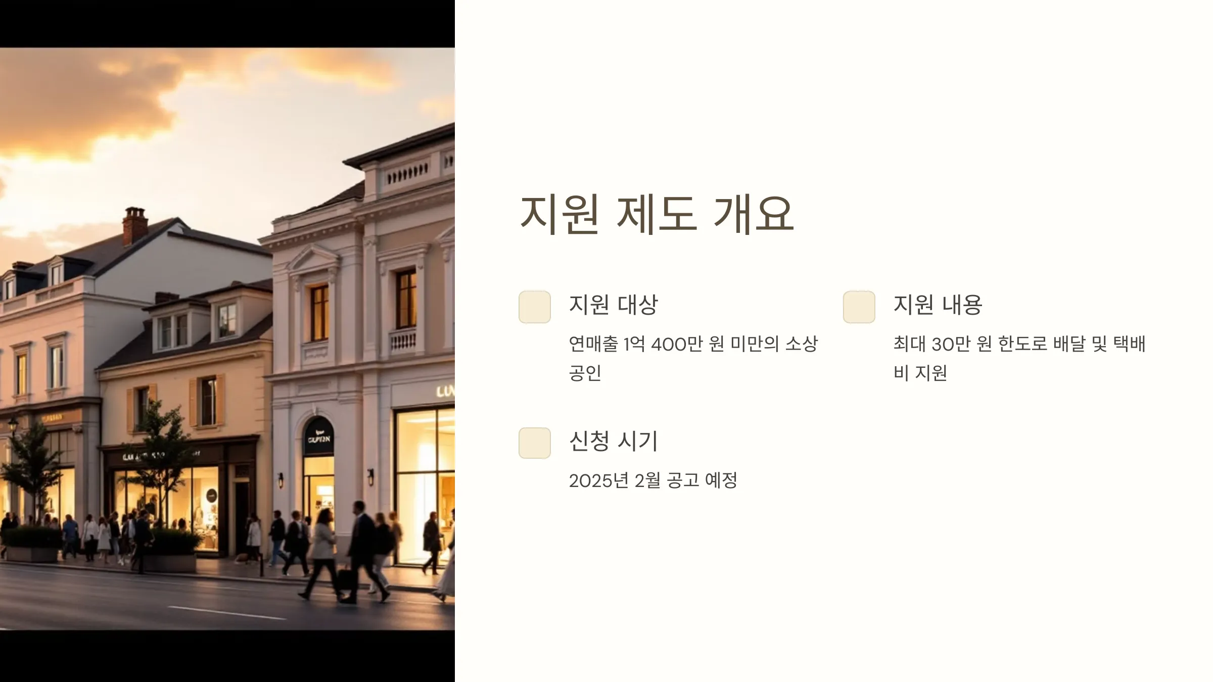 - 지원 범위의 한계: 최대 30만 원이라는 지원 한도가 일부 소상공인들에게는 부족하게 느껴질 수 있습니다. 특히 배달 및 택배 사용 빈도가 높은 업종의 경우 추가 지원 필요성이 제기될 가능성이 있습니다.