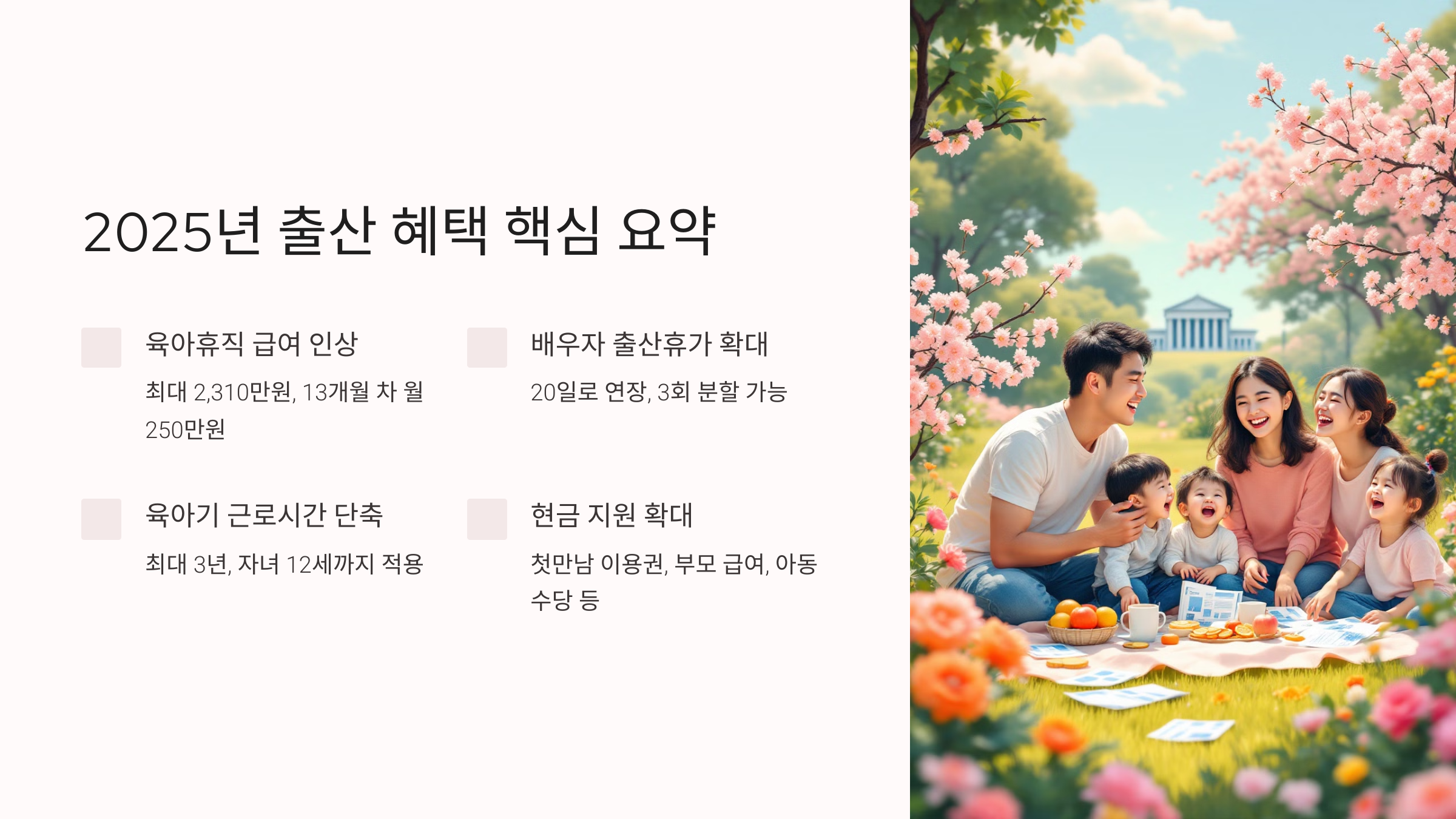 2025년 정부 예산안 발표와 함께 확대된 출산 혜택을 꼼꼼하게 정리해 드립니다. 특히 지난번 육아지원 3법 국회 통과로 육아휴직 및 배우자 출산휴가 기간이 확대되는 등 반가운 소식이 많으니, 임신 중이거나 계획 중인 분들께 정말 유용한 정보가 될 것입니다.