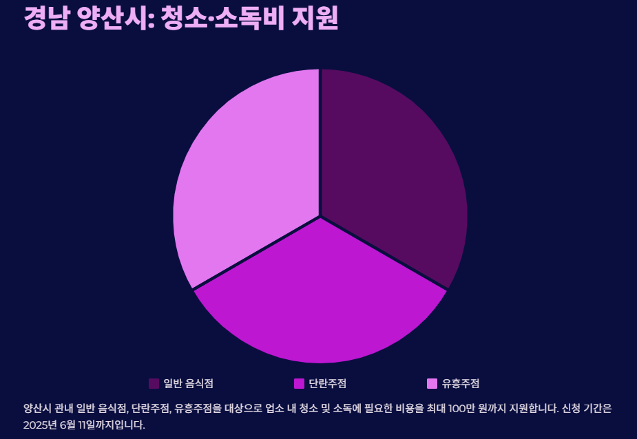 "양산시의 유흥주점까지 포괄하는 청소·소독비 지원은 흔치 않은 기회입니다. 위생적인 환경은 고객 만족의 기본이니, 놓치지 말고 신청하세요."