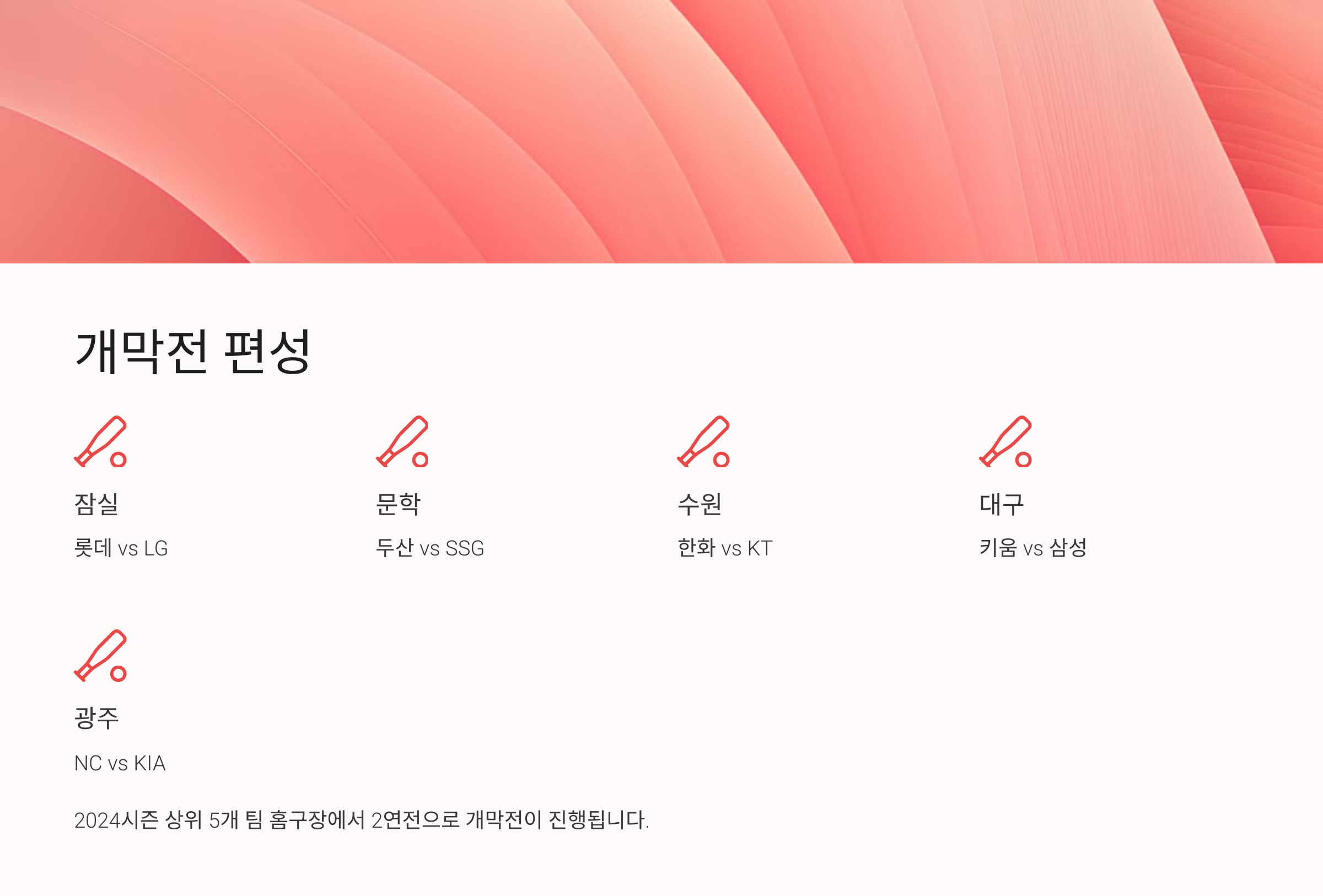 - 2024시즌 상위 5개 팀 홈구장에서 2연전 진행