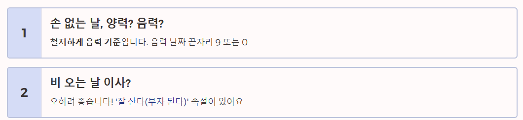 - 비용 차이: 손 없는 날은 평일 대비 이사 비용이 약 20~30% 비싸며, 특히 주말과 겹치면 부르는 게 값이 될 수 있습니다.