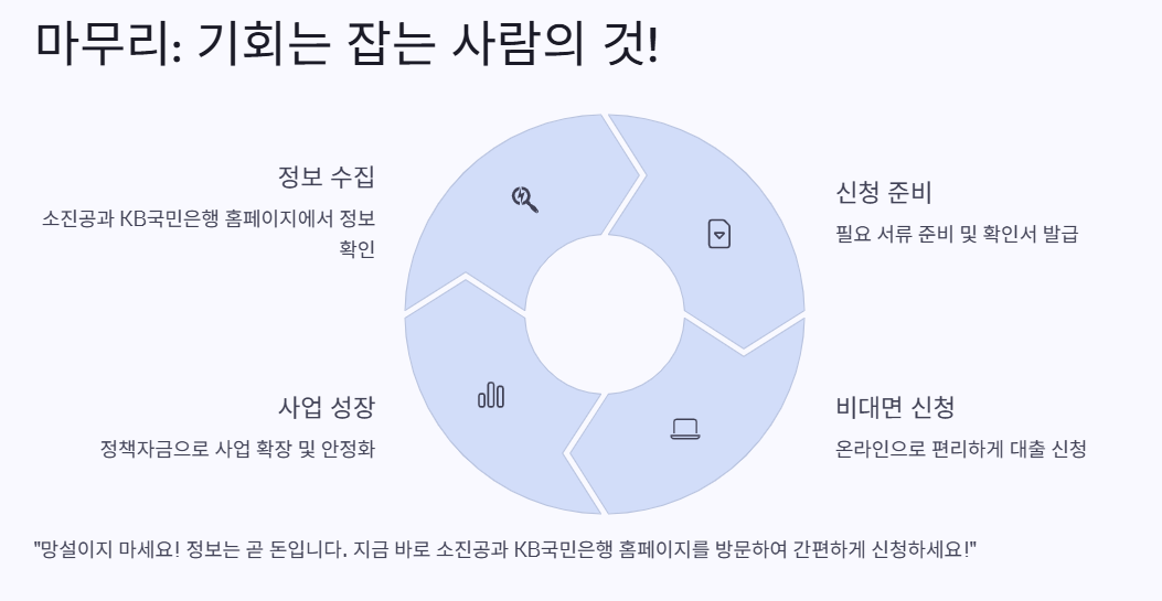 - 정기적인 정보 확인: 소진공 홈페이지와 KB 국민은행의 공지사항을 주기적으로 체크.